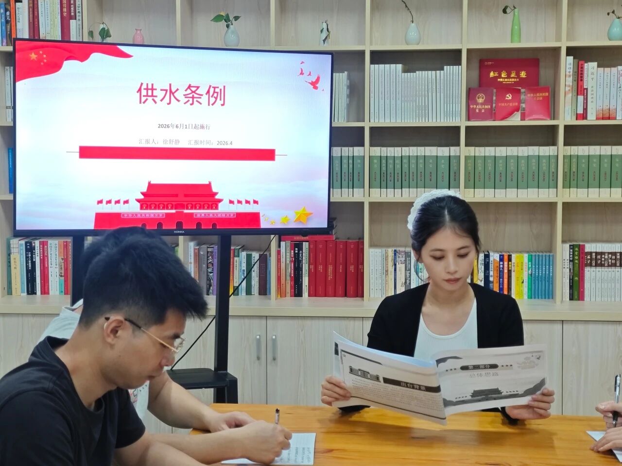 尤溪水务公司依托“职工书屋”平台,常态化开展“我学我讲我专”岗位练兵、“读书分享会”及“法治宣传”等活动,先后组织开展“兴朱子文化 共享尤熹福”、《习近平走进百姓家》图书分享等系列主题活动。2026年,尤溪水务公司“我学我讲我专”岗位练兵活动紧紧围绕新修订《供水条例》学习宣贯,组建宣讲团队。由宣讲团成员带头学习、带头钻研《供水条例》,并结合企业经营实际案例,紧扣水源保护、水质管理、信息公开、二供管理等《条例》新变化新内容,深入解读法规条文背后的深层逻辑与具体要求。活动改变照本宣科的做法,设置案例研讨、现场答疑等互动环节,引导广大职工围绕“管网抢修权责”“用户服务合规”等实际问题展开讨论,通过思维碰撞进一步明晰操作规范,增强依法办事意识和风险防控能力。通过全民阅读实践与企业法治建设有机结合起来,赋能企业合规经营、行稳致远。