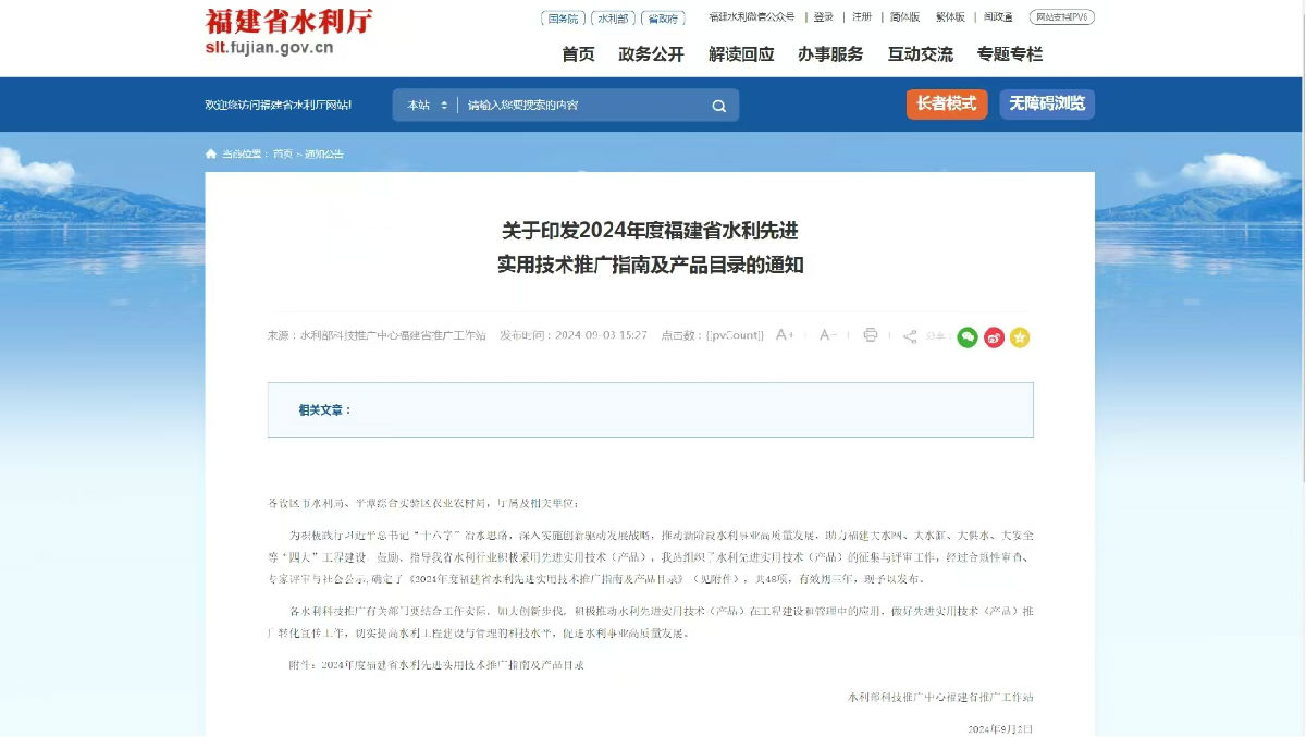 近日,福建省水利厅公布《2024年度福建省水利先进实用技术推广指南及产品目录》,91大神 所属水投设计公司“水利水电工程生态流量核定与保障技术”“智能化新型分子筛净水设备”以及水投科技公司“基于QGIS开源技术栈的供水管网GIS在线编辑平台”等3项成果成功入选。