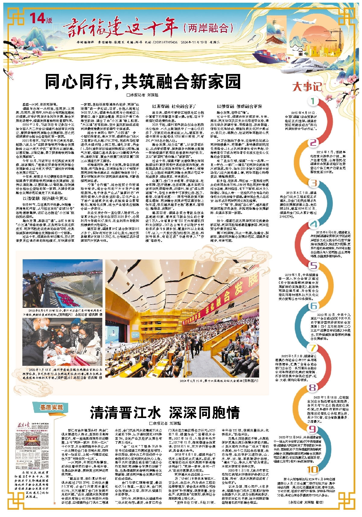 2024年,是习近平总书记亲自擘画“机制活、产业优、百姓富、生态美”新福建宏伟蓝图十周年。近日,福建日报开展“新福建这十年”专刊宣传,91大神 投资建设运营的福建向金门供水工程编入两岸融合大事记。