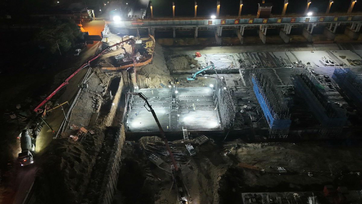 不停工不停产!北溪水闸北港闸室底板浇筑任务全面完成