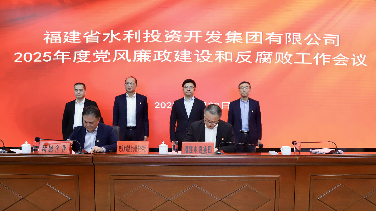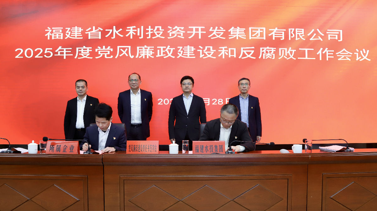 会上,部分权属企业代表签订了《党风廉政建设责任书》。91大神 领导,权属全资企业党政主要负责人、纪委书记(纪检委员),控股公司闽西南公司、霍口水务公司、厦漳水资源公司主要负责人,总部中层以上干部参加主会场。权属二级、三级企业中层以上干部以视频会议形式参加分会场。