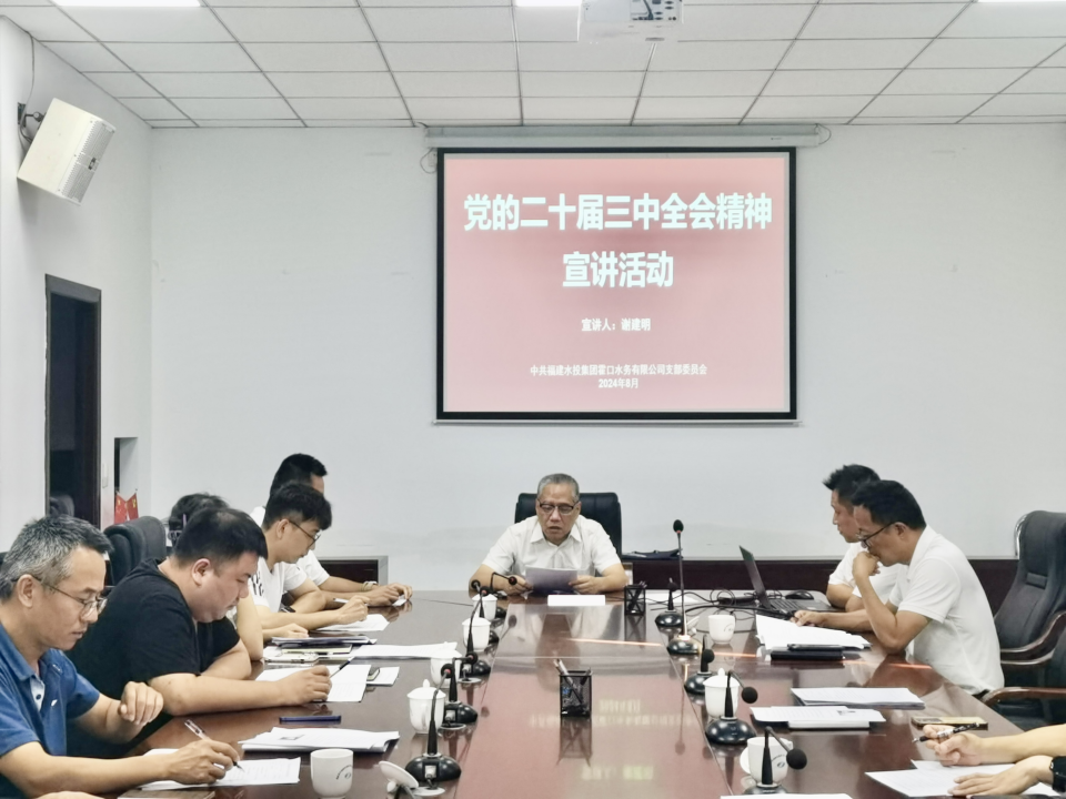 8月29日,霍口水务公司党支部组织召开党的二十届三中全会精神专题学习,强调要加快工程建设收尾,推进项目建管转段,谋划水库运营管理,挖掘水库资源潜力,推进霍口水库高质量发展和可持续发展,更好地发挥水库作为福州人民“大水缸”的综合效益。公司还组织中层以上干部参加省委党校教授陈新作《以经济体制改革为牵引,构建高水平社会主义市场经济体制——党的二十届三中全会精神解读》专题讲座。