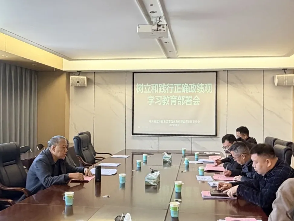 闽水管理公司组织党员、干部召开树立和践行正确政绩观学习教育部署会议,全面部署学习教育工作。会议强调,党员、干部要提高政治站位,深刻把握正确政绩观的实践要求,切实把学习教育成果转化为推动公司高质量发展的实干实效。一要以学铸魂,坚持原原本本学、联系实际思,真正把正确政绩观内化于心、外化于行。二要以查促改,坚持刀刃向内、深查细照,既找工作层面的“偏差”,更挖思想深处的“根子”,在对标检视中正本清源。三要以干践行,坚持把正确政绩观融入企业改革发展、经营提效中,担当作为、务求实效,全力推动公司在“十五五”开局之年起好步、开好局。